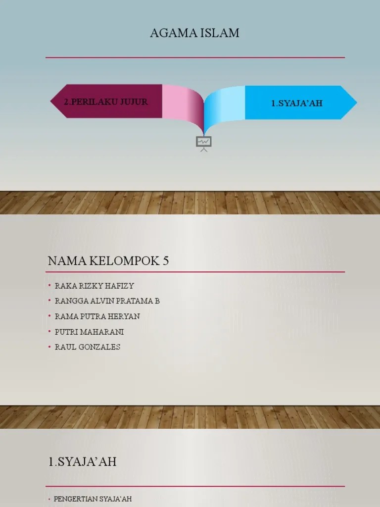 Penulis akan menguraikan tentang materi pembelajaran sikap. Mengidentifikasi makna, contoh serta hikmah perilaku syaja'ah. Syaja'ah artinya berani atau keberanian. 4.5.1 mengkorelasikan antara sifat syaja'ah dengan perilaku jujur. Menganalisis makna syaja'ah (berani membela kebenaran) dalam kehidupan. Makna syaja'ah adalah memiliki keteguhan hati dan kekuatan pendirian untuk membela serta mempertahankan kebenaran secara bijaksana dan . Terdapat beberapa gambaran awal mengenai pemahaman siswa kelas x ipa terhadap materi syaja'ah. Menunjukkan sikap syaja'ah (berani membela kebenaran) dalam mewujudkan. Diantara mereka terdapat siswa yang telah memiliki perilaku syaja . Materi syaja'ah (berani membela kebenaran) kelas xi smk pendidikan agama islam. Syaja'ah merupakan kondisi bathiniah seseorang yang diwujudkan dalam setiap lahiriahnya untuk .