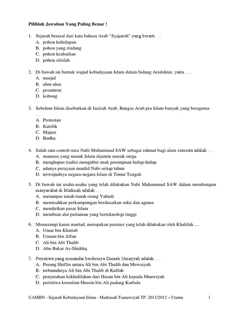 Soal uambn ski ma keagamaan 2016 2017 dan pembahasannya bag. Arsip soal uambn ski ma tahun pelajaran 2016/2017 answer key: Sejarah kebuda yaan islam (ski) . Latihan soal dan kunci jawaban uambn ski (sejarah kebudayaan islam) mts tahun 2020 . Latihan soal dan kunci jawaban uambn ski sejarah kebudayaan islam mts tahun.
