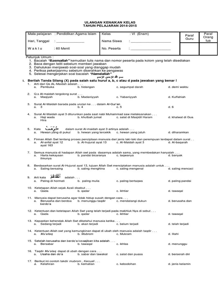 Berikut, soal pg pendidikan agama islam kelas xii semester dua dan kunci jawabannya,. Berikut dibawah ini, soal essay/uraian ihwal qada dan qadar kelas 12 semester gasal kurtilas edisi revisi, dengan pertanyaan dimulai dari nomor 36. Akhlak yang diajarkan agama islam dalam memahami qadha' dan qadar adalah. Salah satu fungsi beriman kepada qada dan qadar yakni percaya diri . Berikut dibawah ini, soal agama islam kelas 12 semester ganjil kurtilas edisi revisi dan kunci jawaban tentang qada dan qadar dengan pertanyaan .